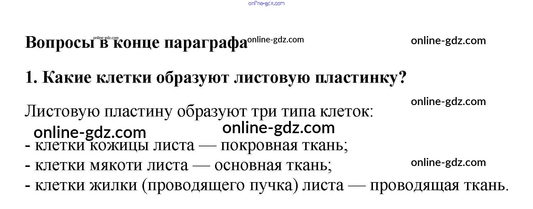 Готовые домашние задания по Биологии за 6 класс Учебник Пасечник Вертикаль 2014 - Вопросы в конце параграфа §7. Клеточное строение листа 1