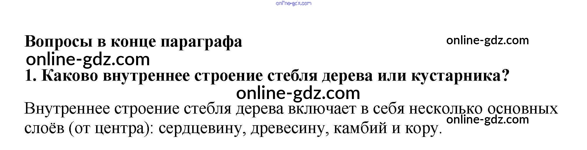 Готовые домашние задания по Биологии за 6 класс Учебник Пасечник Вертикаль 2014 - Вопросы в конце параграфа §9. Строение стебля 1