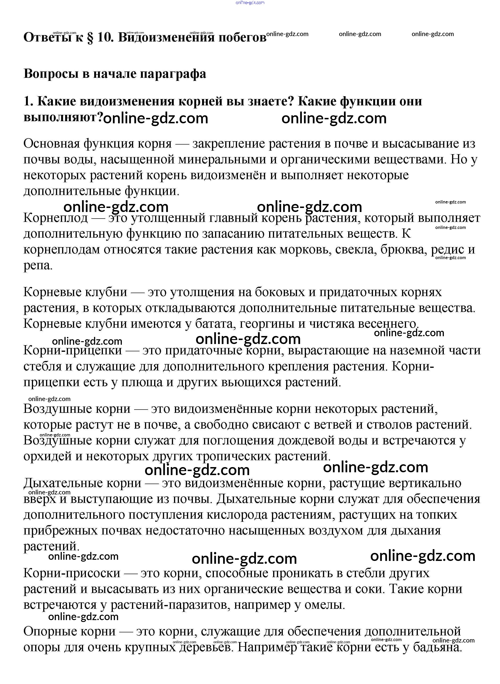 Готовые домашние задания по Биологии за 6 класс Учебник Пасечник Вертикаль 2014 - Вопросы в начале параграфа §10. Видоизменения побегов 1