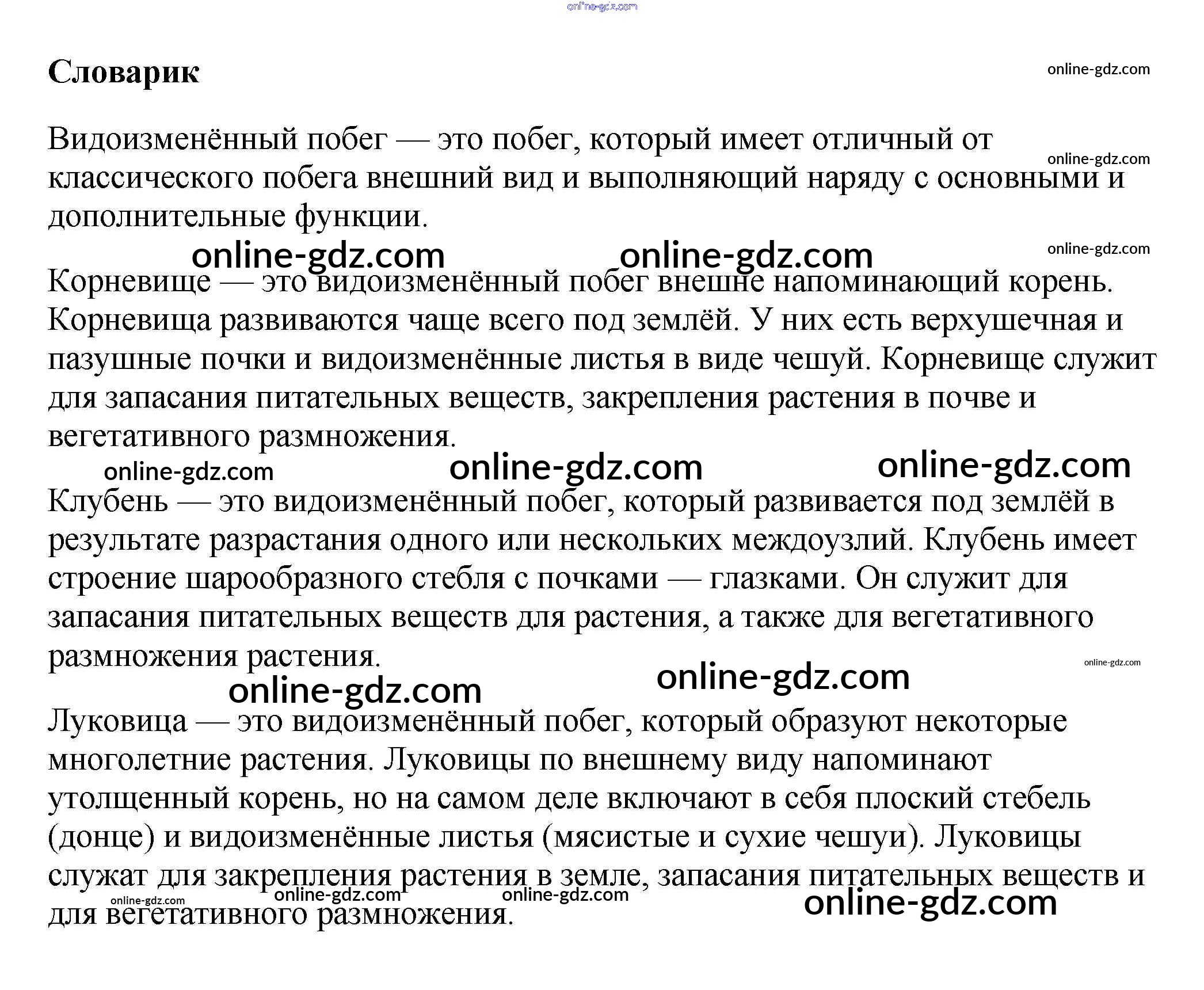 Готовые домашние задания по Биологии за 6 класс Учебник Пасечник Вертикаль 2014 - Словарик §10. Видоизменения побегов 1