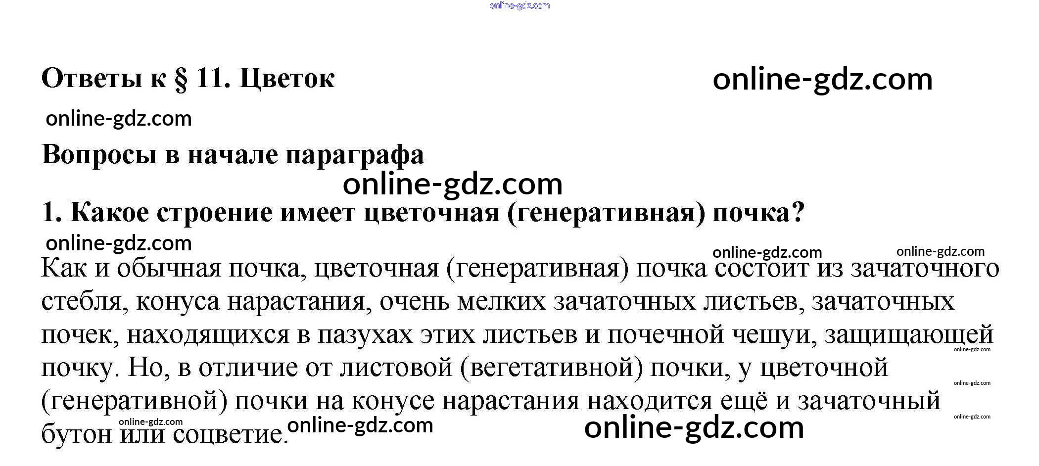 Готовые домашние задания по Биологии за 6 класс Учебник Пасечник Вертикаль 2014 - Вопросы в начале параграфа §11. Цветок 1