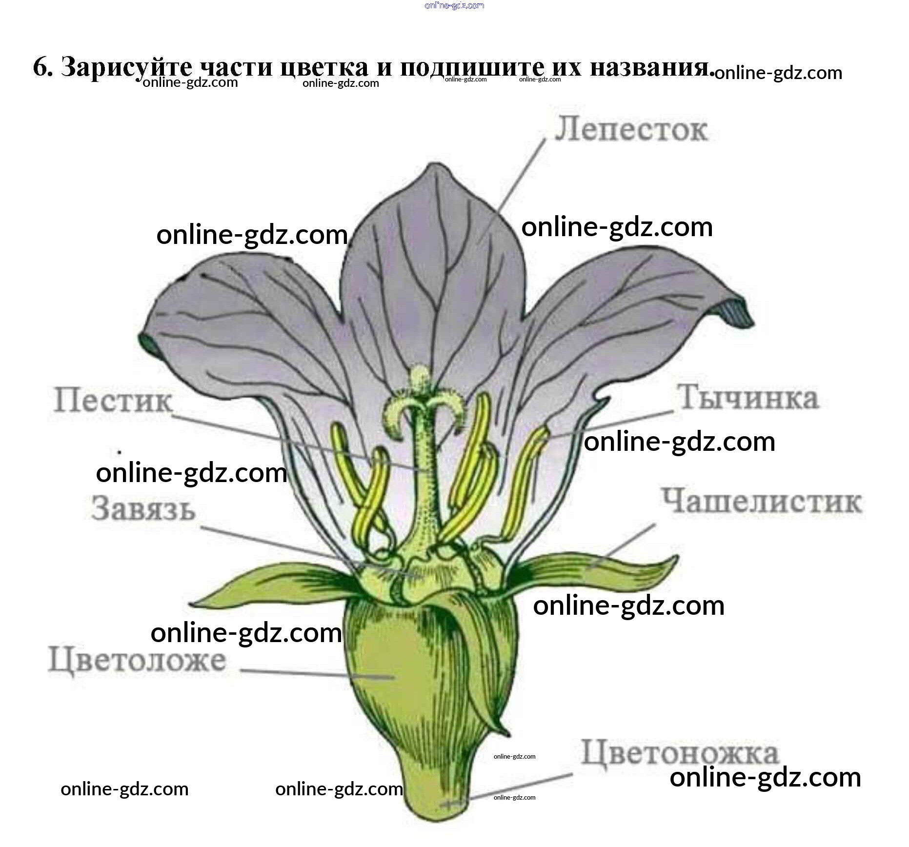 Готовые домашние задания по Биологии за 6 класс Учебник Пасечник Вертикаль 2014 - Строение цветка §11. Цветок 6