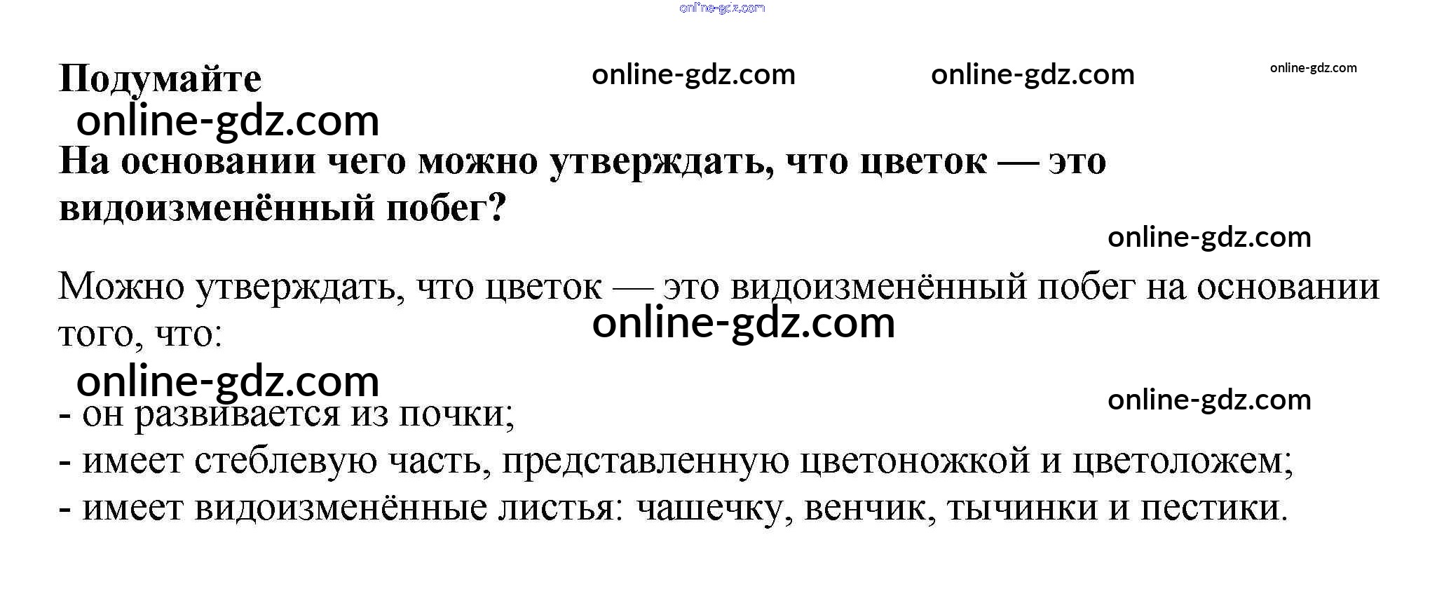 Готовые домашние задания по Биологии за 6 класс Учебник Пасечник Вертикаль 2014 - Подумайте §11. Цветок 1