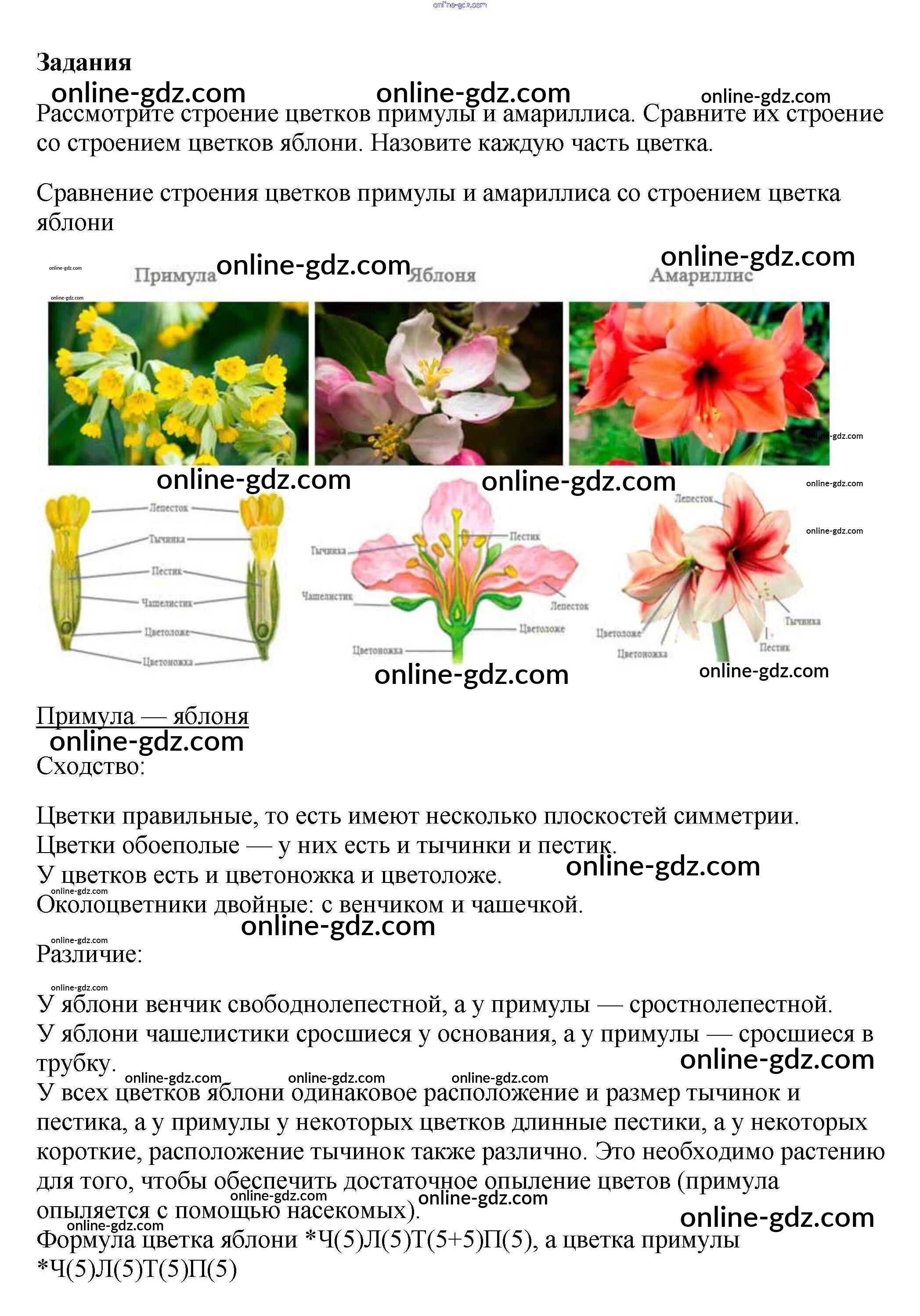 Готовые домашние задания по Биологии за 6 класс Учебник Пасечник Вертикаль 2014 - Задания §11. Цветок 1