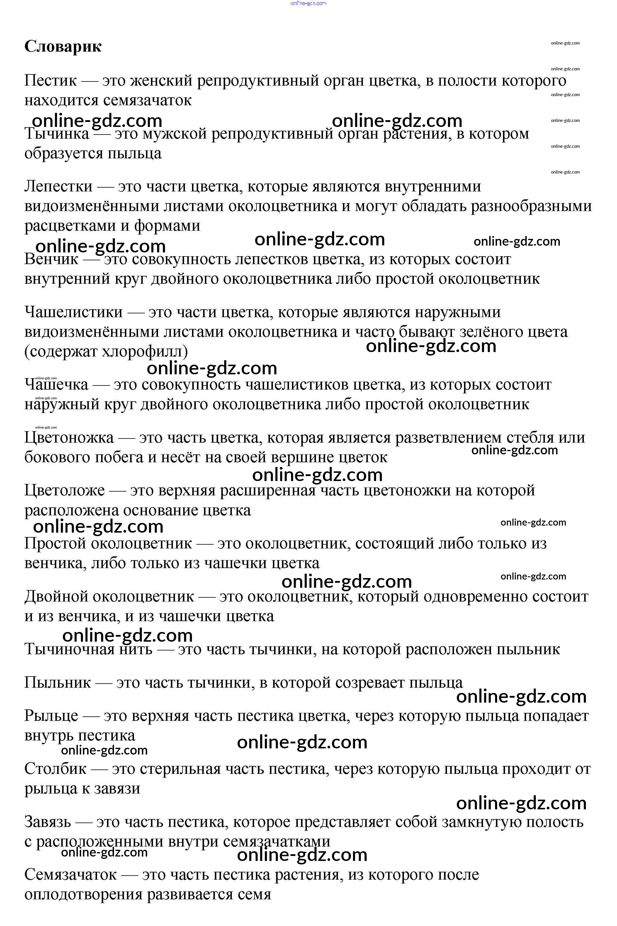 Готовые домашние задания по Биологии за 6 класс Учебник Пасечник Вертикаль 2014 - Словарик §11. Цветок 1