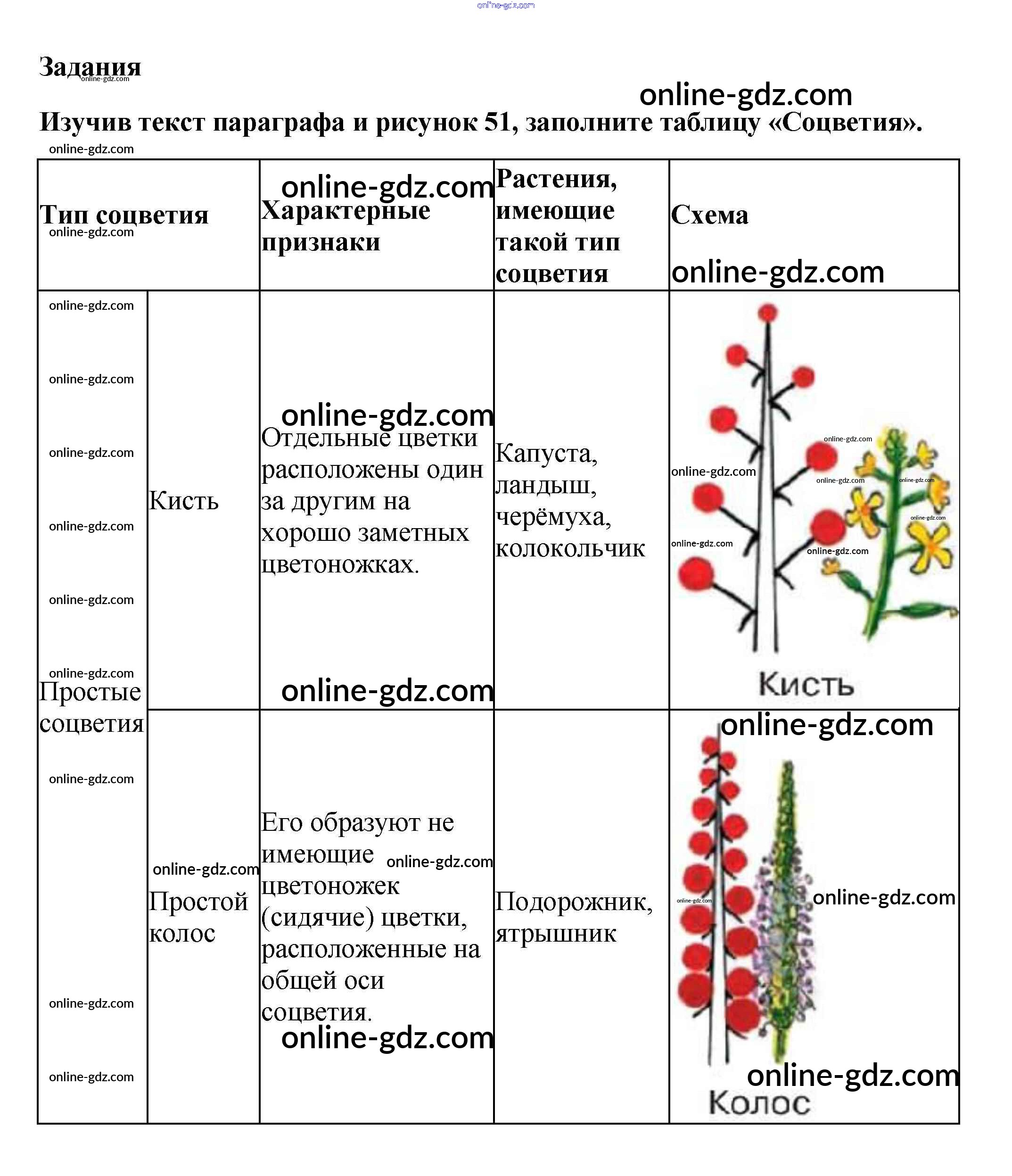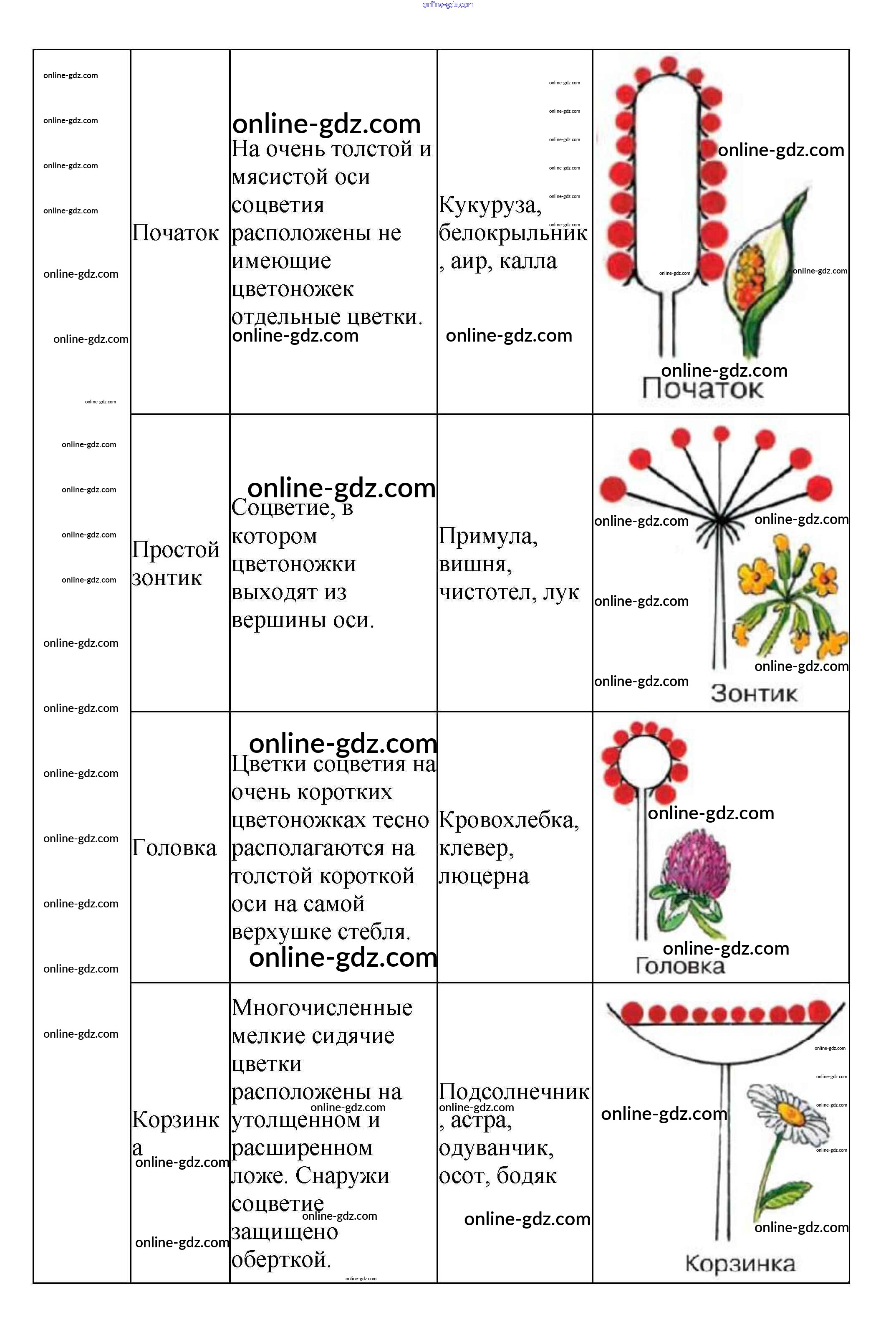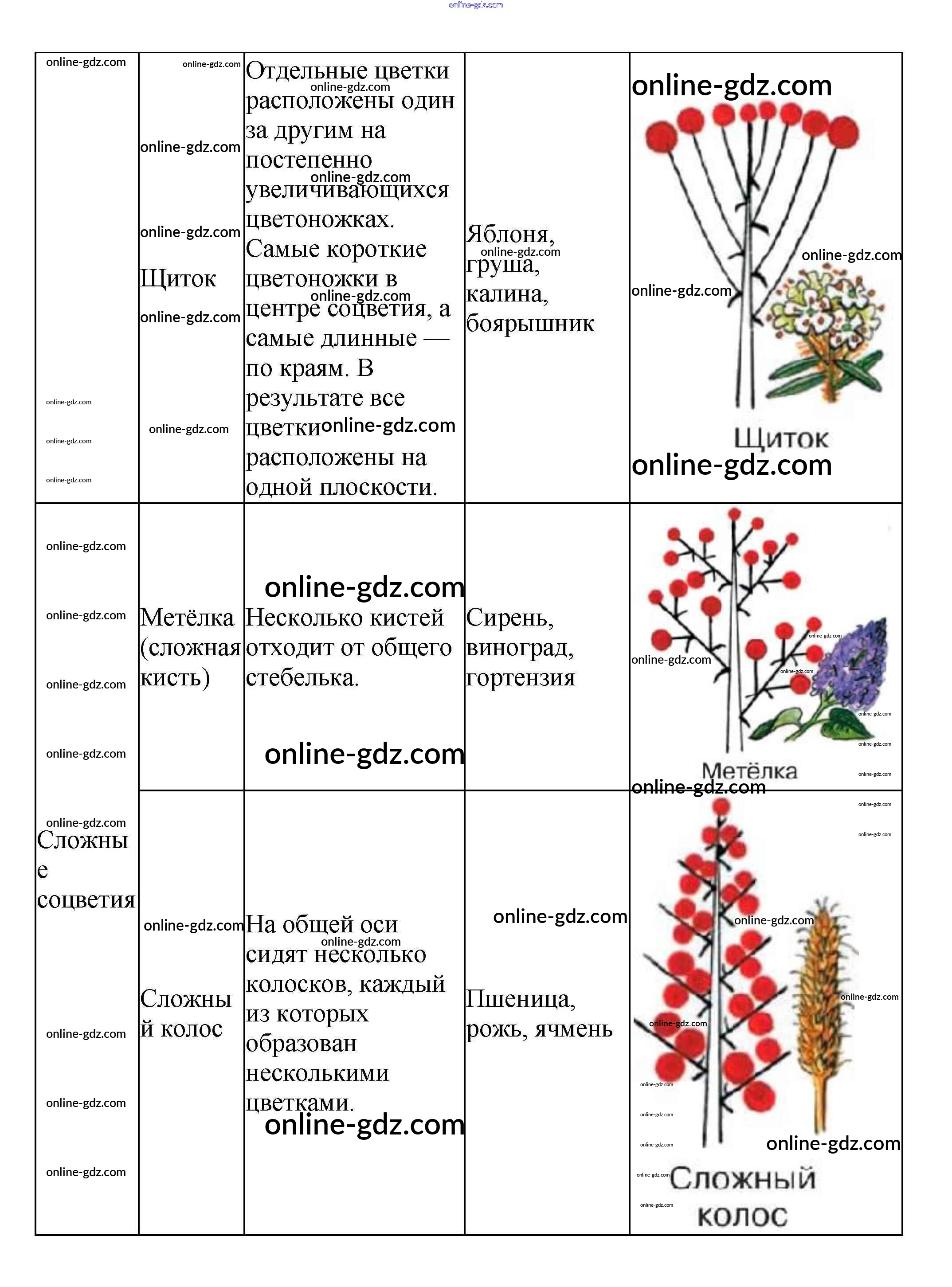 Готовые домашние задания по Биологии за 6 класс Учебник Пасечник Вертикаль 2014 - Задания §12. Соцветия 1