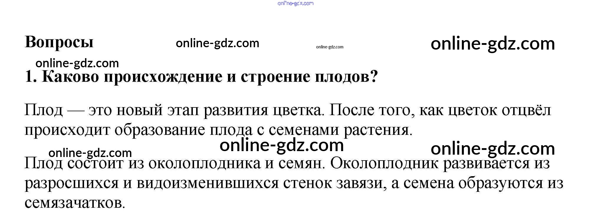 Готовые домашние задания по Биологии за 6 класс Учебник Пасечник Вертикаль 2014 - Вопросы в конце параграфа §13. Плоды 1