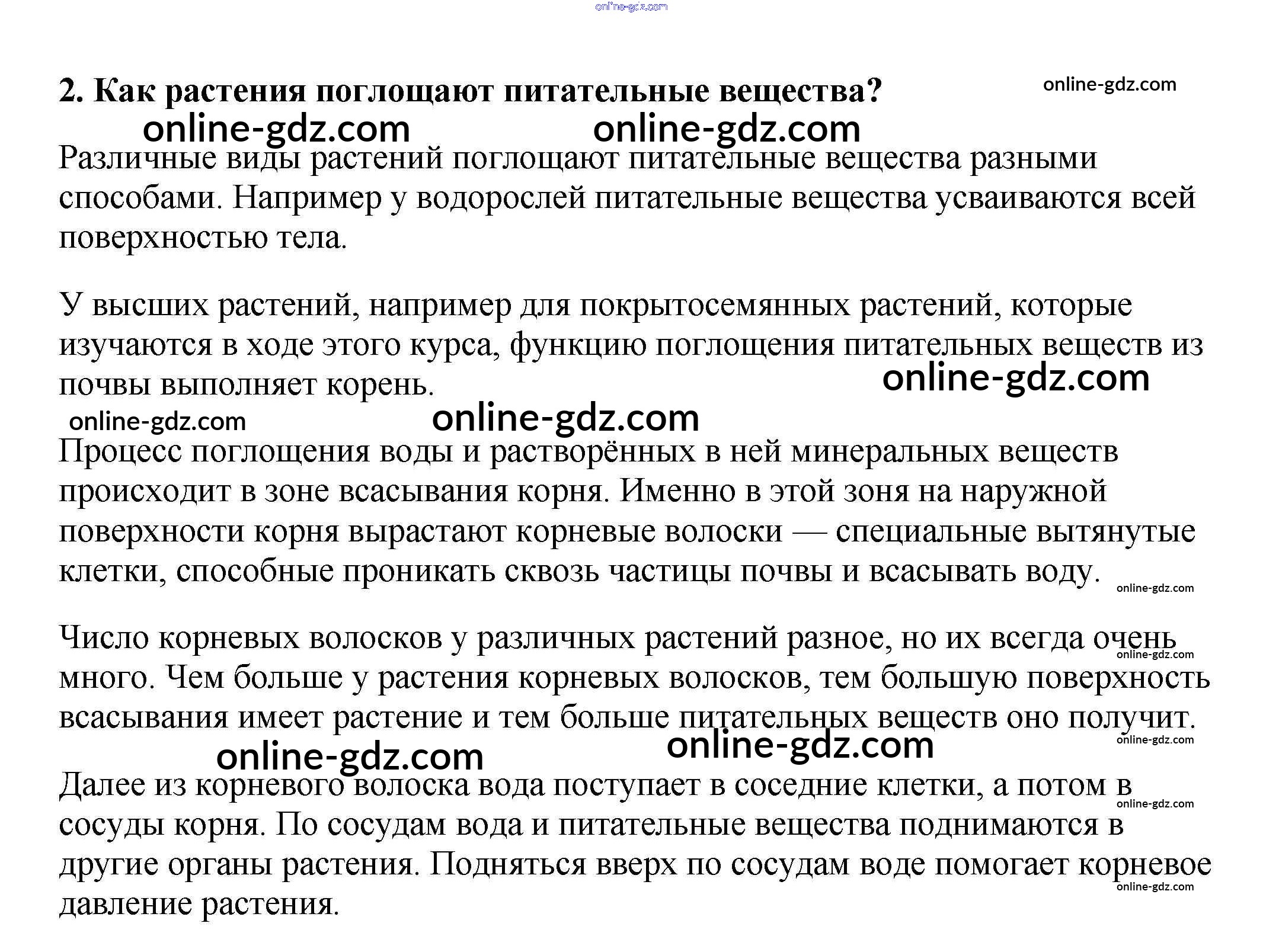Готовые домашние задания по Биологии за 6 класс Учебник Пасечник Вертикаль 2014 - Вопросы в конце параграфа §15. Минеральное питание растений 2