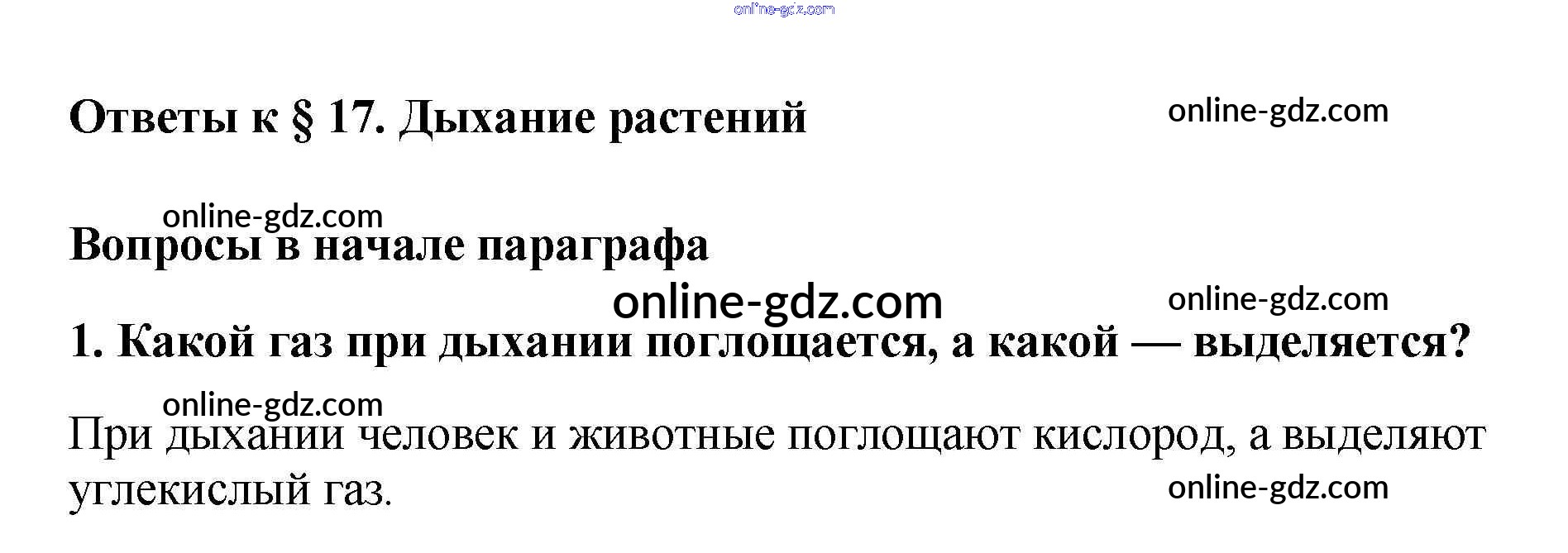 Готовые домашние задания по Биологии за 6 класс Учебник Пасечник Вертикаль 2014 - Вопросы в начале параграфа §17. Дыхание растений 1