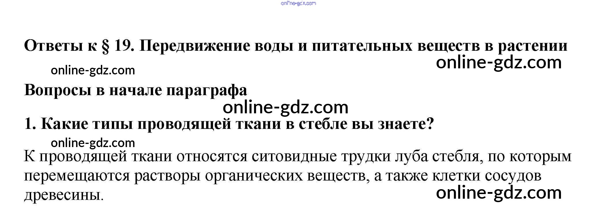 Готовые домашние задания по Биологии за 6 класс Учебник Пасечник Вертикаль 2014 - Вопросы в начале параграфа §19. Передвижение воды и питательных веществ в растении 1