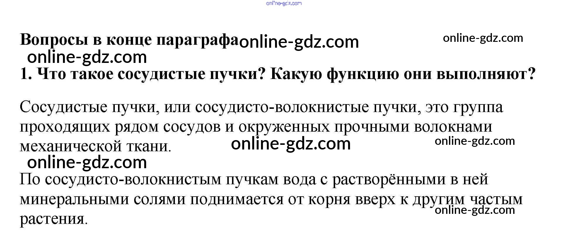 Готовые домашние задания по Биологии за 6 класс Учебник Пасечник Вертикаль 2014 - Вопросы в конце параграфа §19. Передвижение воды и питательных веществ в растении 1