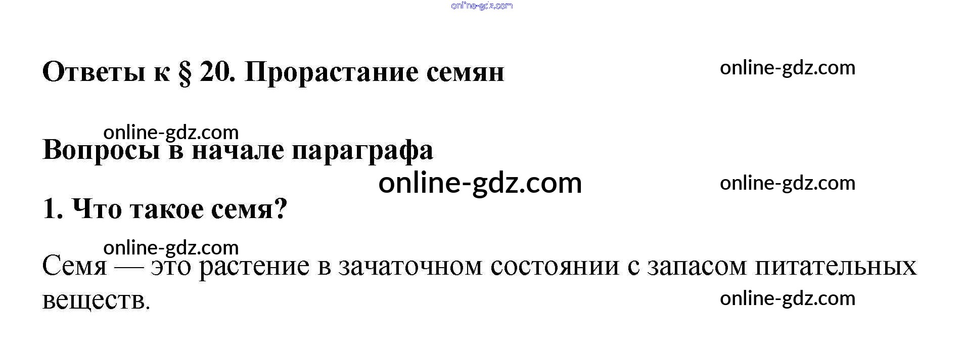 Готовые домашние задания по Биологии за 6 класс Учебник Пасечник Вертикаль 2014 - Вопросы в начале параграфа §20. Прорастание семян 1