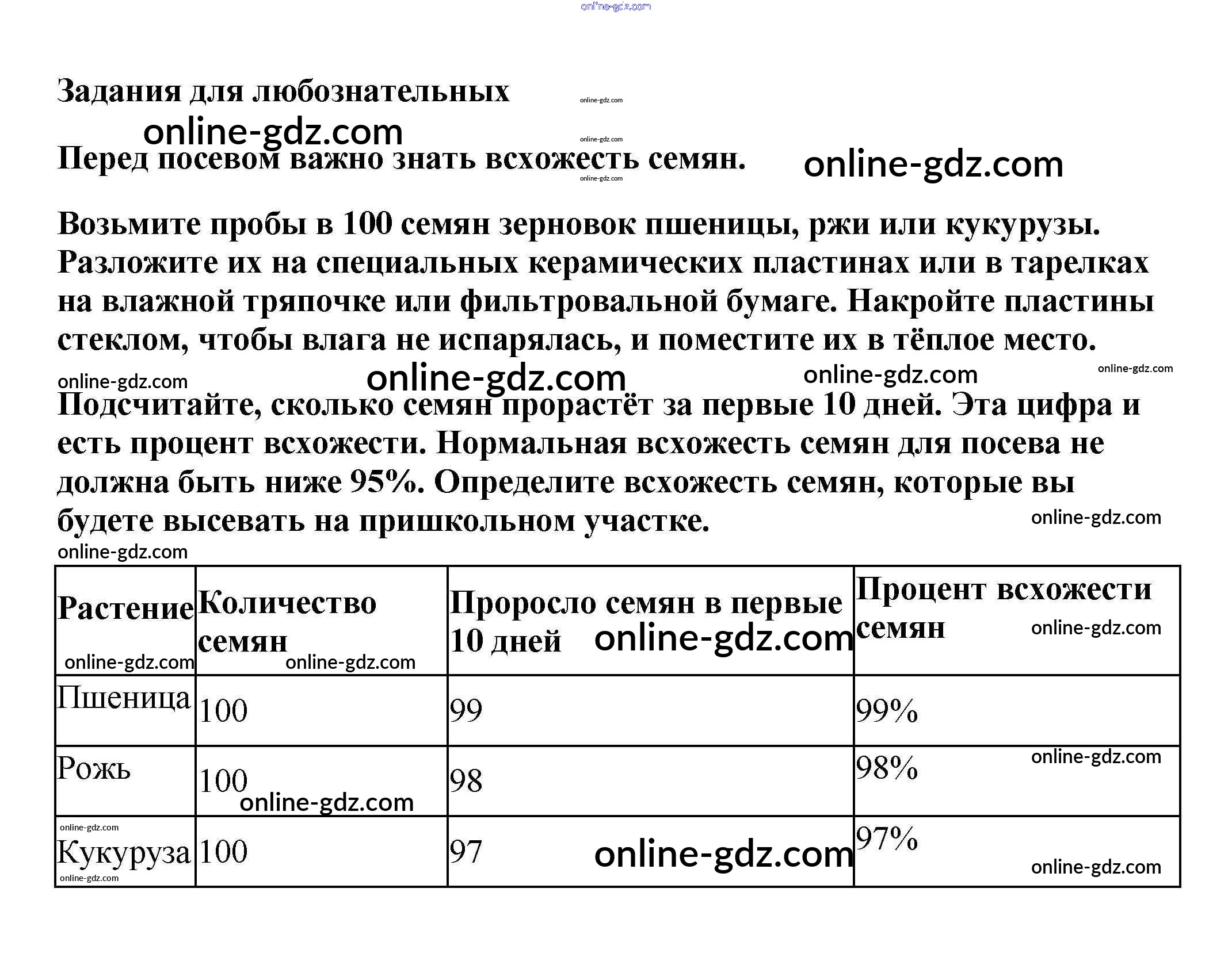 Готовые домашние задания по Биологии за 6 класс Учебник Пасечник Вертикаль 2014 - Задания для любознательных §20. Прорастание семян 1