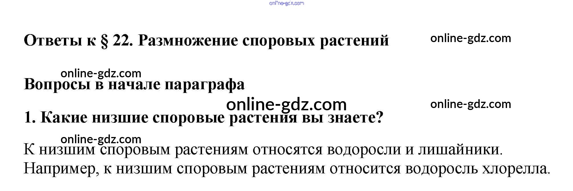 Готовые домашние задания по Биологии за 6 класс Учебник Пасечник Вертикаль 2014 - Вопросы в начале параграфа §22. Размножение споровых растений 1