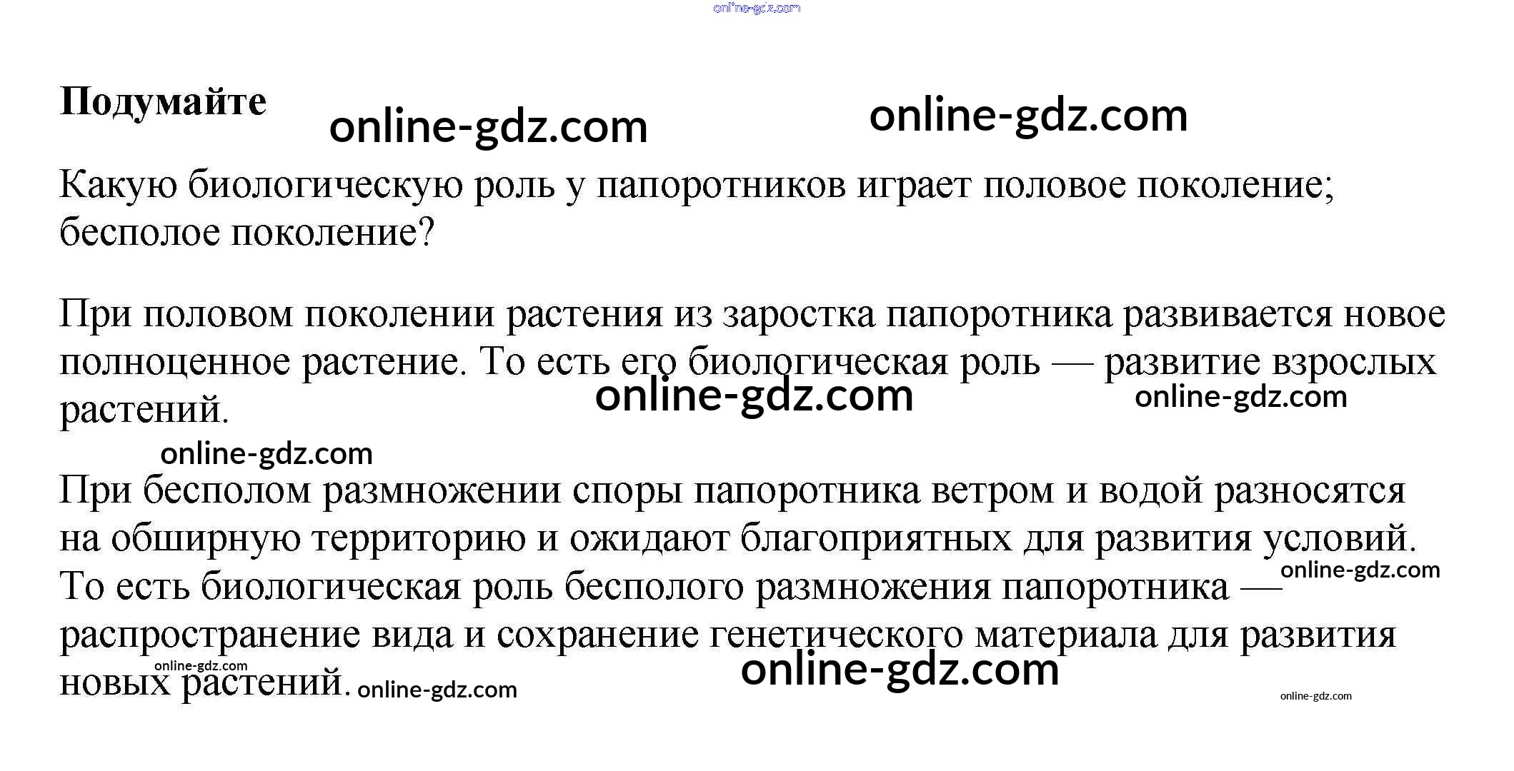 Готовые домашние задания по Биологии за 6 класс Учебник Пасечник Вертикаль 2014 - Подумайте §22. Размножение споровых растений 1
