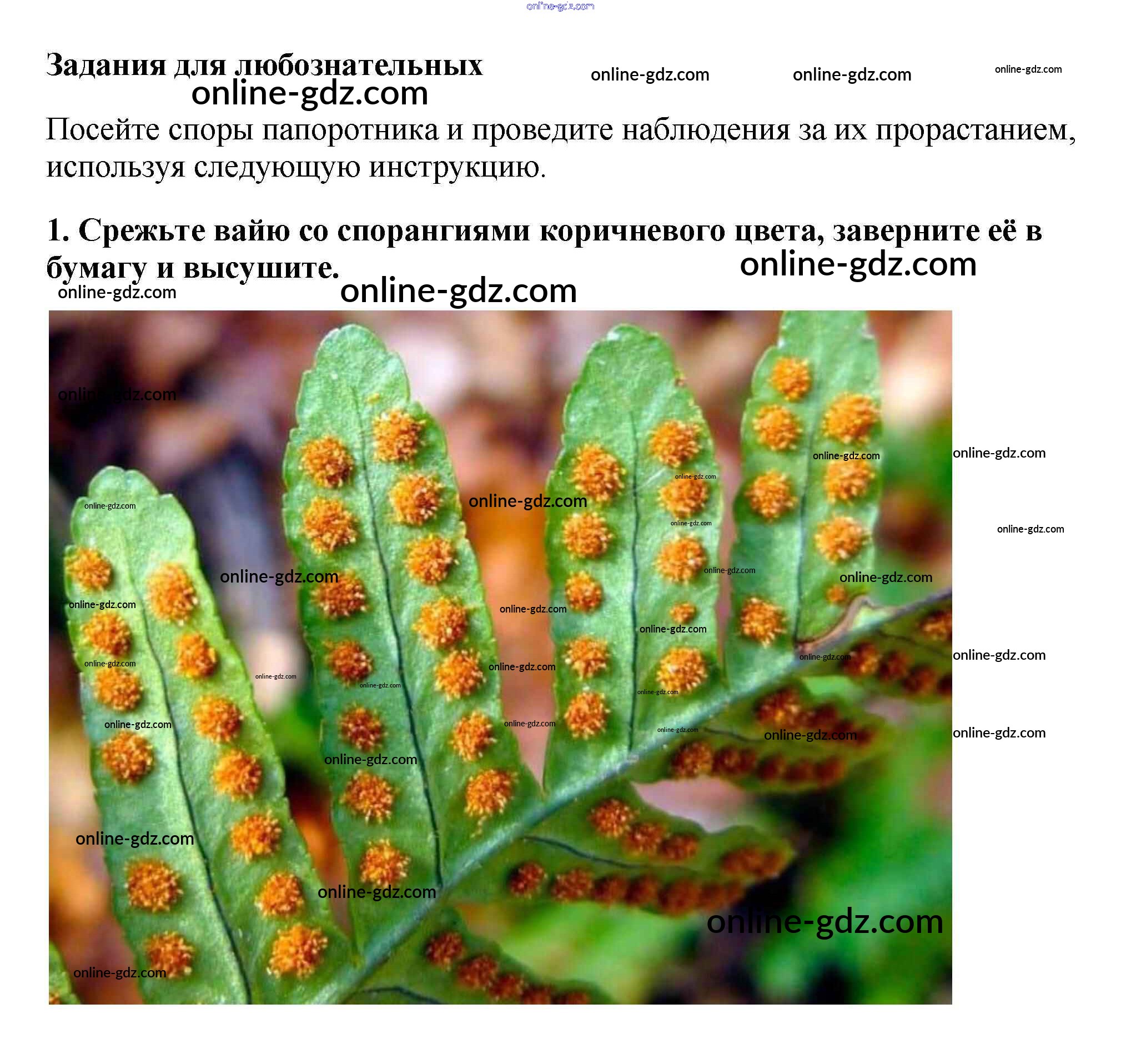Готовые домашние задания по Биологии за 6 класс Учебник Пасечник Вертикаль 2014 - Задания для любознательных §22. Размножение споровых растений 1