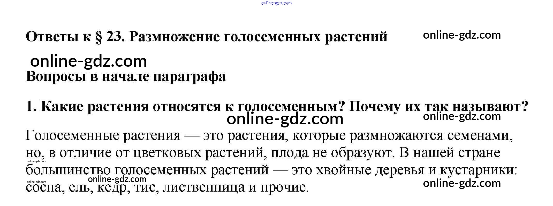 Готовые домашние задания по Биологии за 6 класс Учебник Пасечник Вертикаль 2014 - Вопросы в начале параграфа §23. Размножение голосеменных растений 1