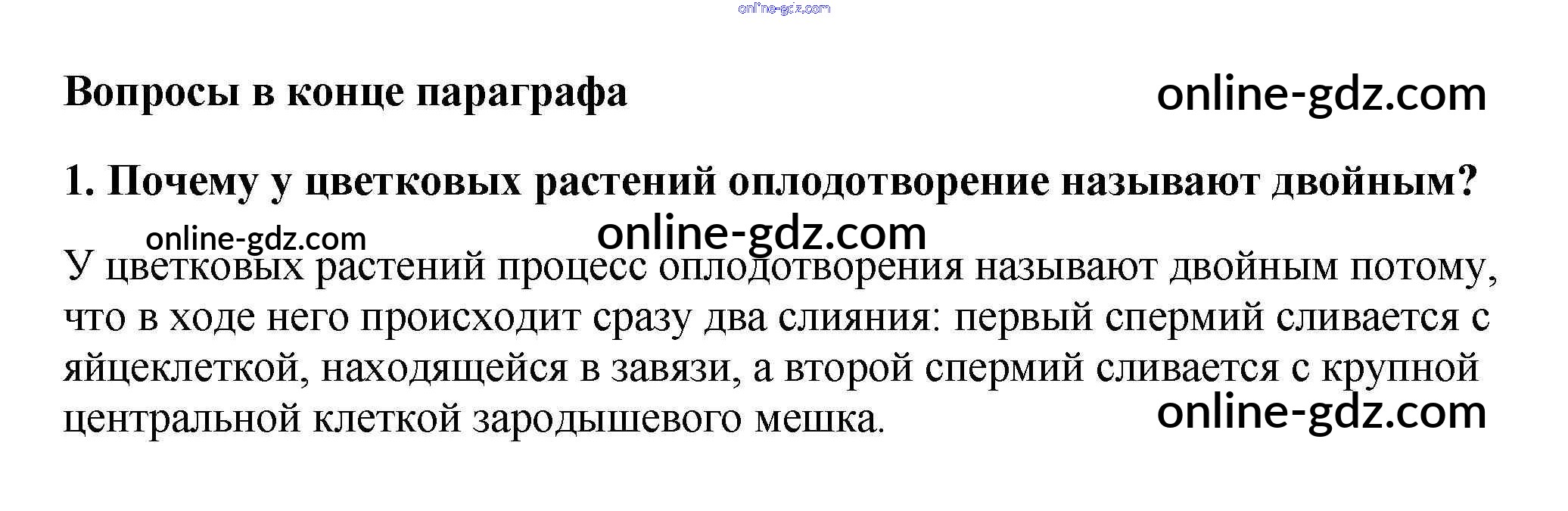 Готовые домашние задания по Биологии за 6 класс Учебник Пасечник Вертикаль 2014 - Вопросы в конце параграфа §24. Половое размножение покрытосеменных растений 1