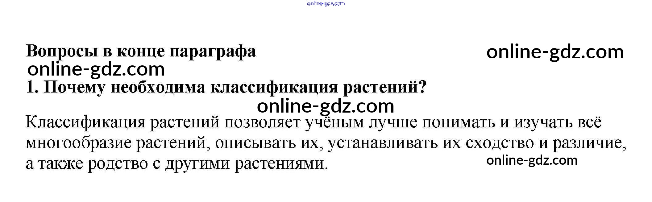 Готовые домашние задания по Биологии за 6 класс Учебник Пасечник Вертикаль 2014 - Вопросы в конце параграфа §26. Основы систематики растений 1