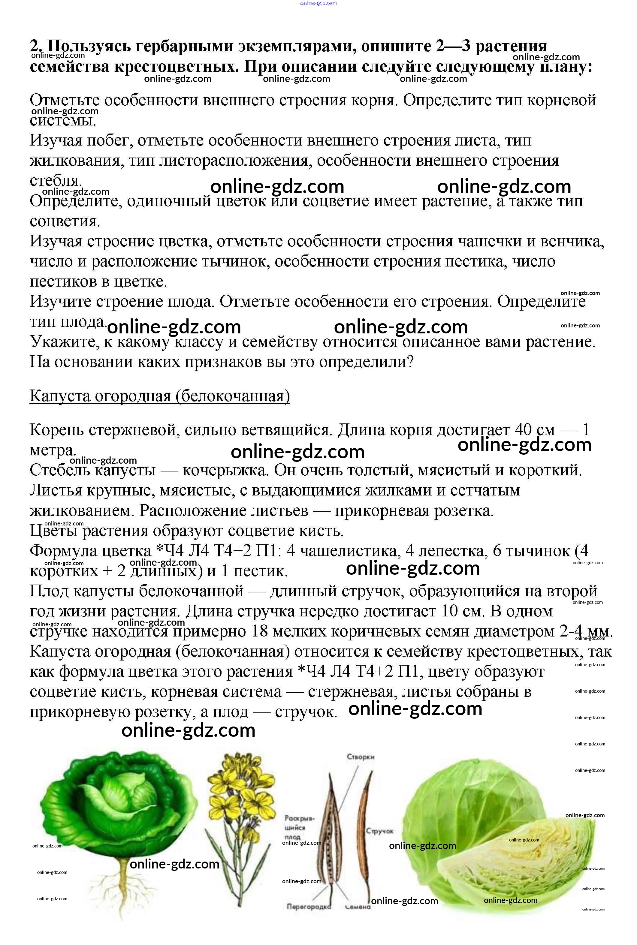 Готовые домашние задания по Биологии за 6 класс Учебник Пасечник Вертикаль 2014 - Задания §27. Класс Двудольные. Семейства Крестоцветные (Капустные) и Розоцветные 2