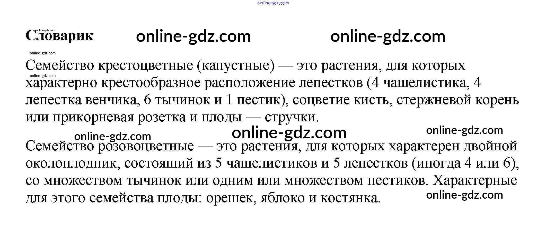 Готовые домашние задания по Биологии за 6 класс Учебник Пасечник Вертикаль 2014 - Словарик §27. Класс Двудольные. Семейства Крестоцветные (Капустные) и Розоцветные 1