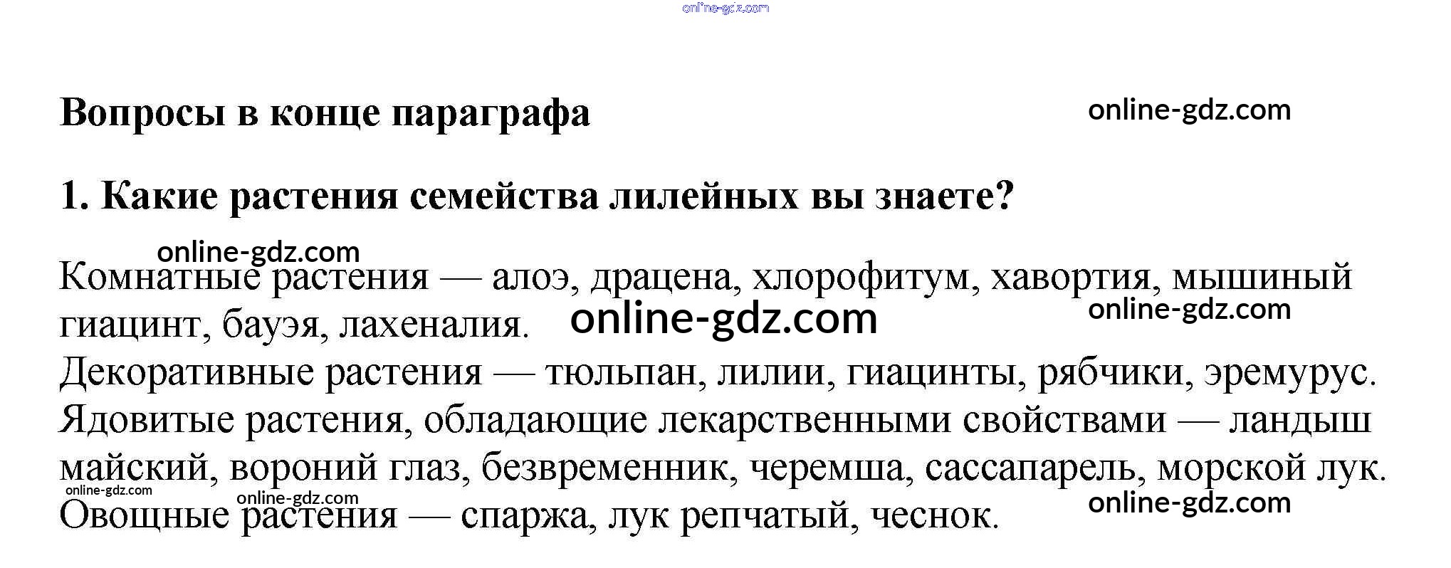 Готовые домашние задания по Биологии за 6 класс Учебник Пасечник Вертикаль 2014 - Вопросы в конце параграфа §29. Класс Однодольные. Семейства Лилейные и Злаки 1
