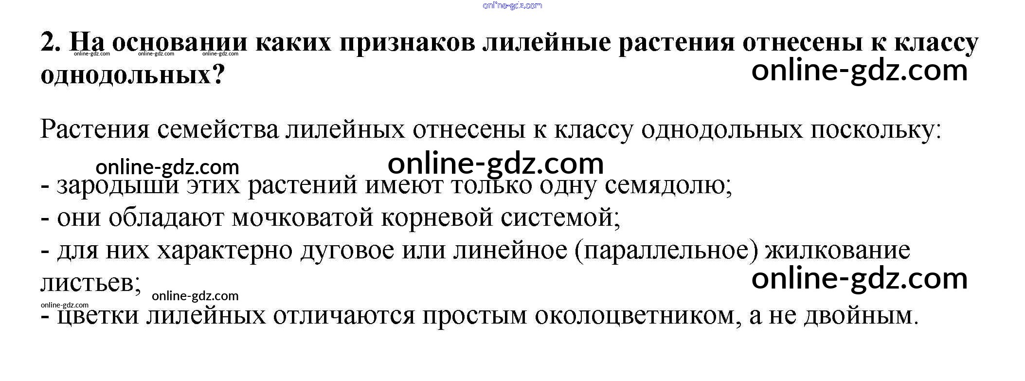 Готовые домашние задания по Биологии за 6 класс Учебник Пасечник Вертикаль 2014 - Вопросы в конце параграфа §29. Класс Однодольные. Семейства Лилейные и Злаки 2