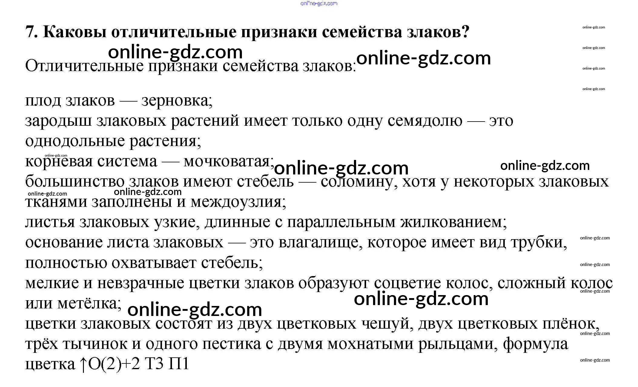 Готовые домашние задания по Биологии за 6 класс Учебник Пасечник Вертикаль 2014 - Вопросы в конце параграфа §29. Класс Однодольные. Семейства Лилейные и Злаки 7