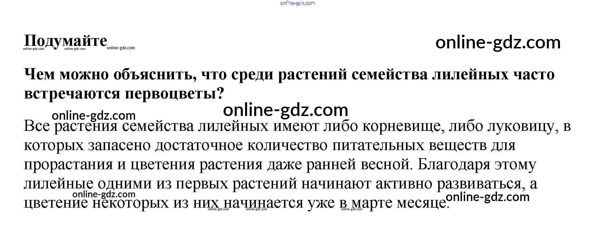 Готовые домашние задания по Биологии за 6 класс Учебник Пасечник Вертикаль 2014 - Подумайте §29. Класс Однодольные. Семейства Лилейные и Злаки 1