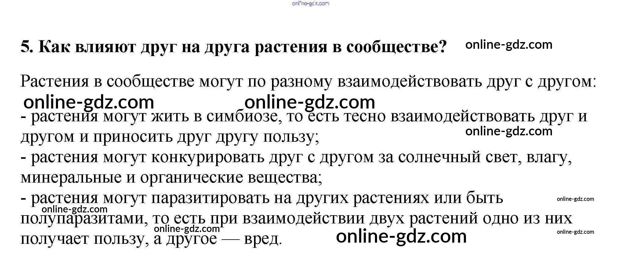 Готовые домашние задания по Биологии за 6 класс Учебник Пасечник Вертикаль 2014 - Вопросы в конце параграфа §31. Растительные сообщества 5