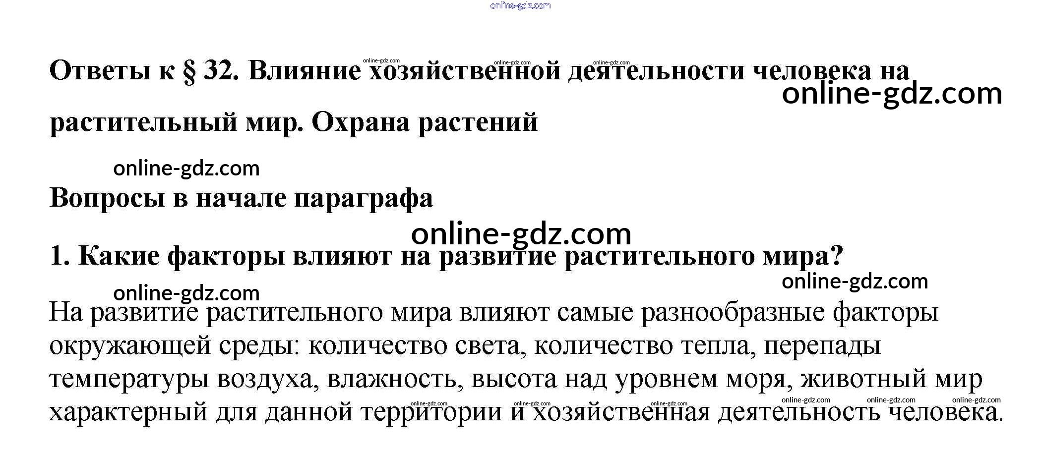 Готовые домашние задания по Биологии за 6 класс Учебник Пасечник Вертикаль 2014 - Вопросы в начале параграфа §32. Влияние хозяйственной деятельности человека на растительный мир. Охрана растений 1