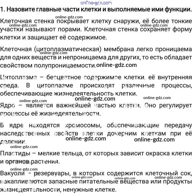Готовые домашние задания по Биологии за 6 класс Учебник Пономарева, Корнилова Алгоритм успеха 2018 - Вопросы §3. Клеточное строение растений. Свойства растительной клетки 1