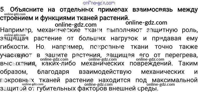 Готовые домашние задания по Биологии за 6 класс Учебник Пономарева, Корнилова Алгоритм успеха 2018 - Вопросы §4. Ткани растений 5