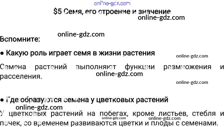 Готовые домашние задания по Биологии за 6 класс Учебник Пономарева, Корнилова Алгоритм успеха 2018 - §5. Семя, его строение и значение Вспомните