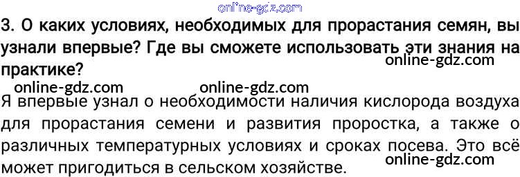 Готовые домашние задания по Биологии за 6 класс Учебник Пономарева, Корнилова Алгоритм успеха 2018 - Вопросы §6. Условия прорастания семян 3