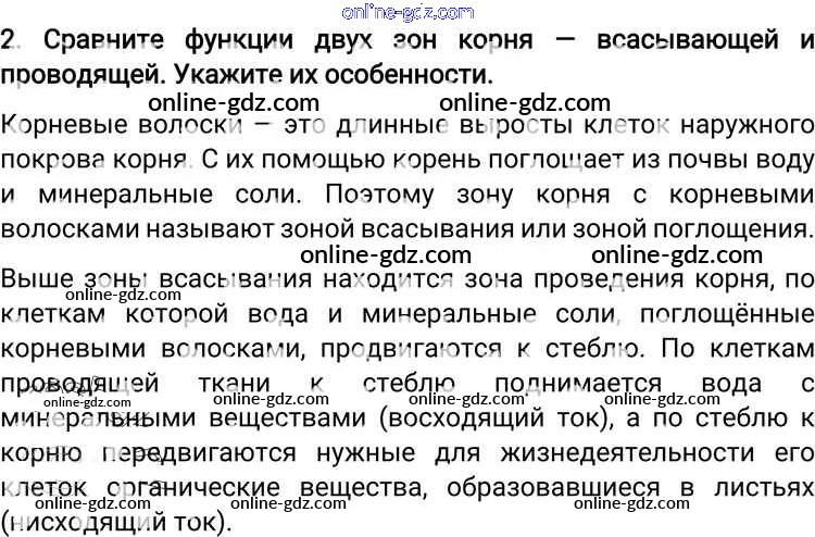 Готовые домашние задания по Биологии за 6 класс Учебник Пономарева, Корнилова Алгоритм успеха 2018 - Вопросы §7. Корень, его строение и значение 2