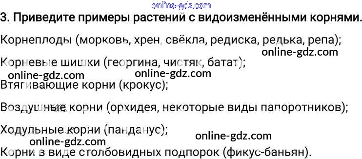 Готовые домашние задания по Биологии за 6 класс Учебник Пономарева, Корнилова Алгоритм успеха 2018 - Вопросы §7. Корень, его строение и значение 3