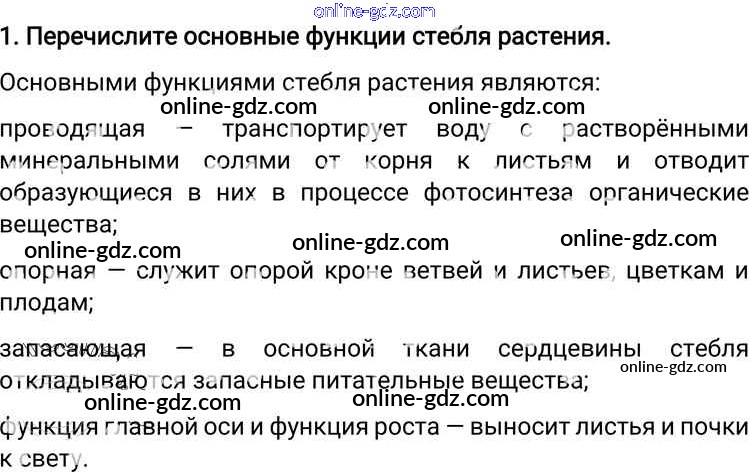 Готовые домашние задания по Биологии за 6 класс Учебник Пономарева, Корнилова Алгоритм успеха 2018 - Вопросы §10. Стебель, его строение и значение 1