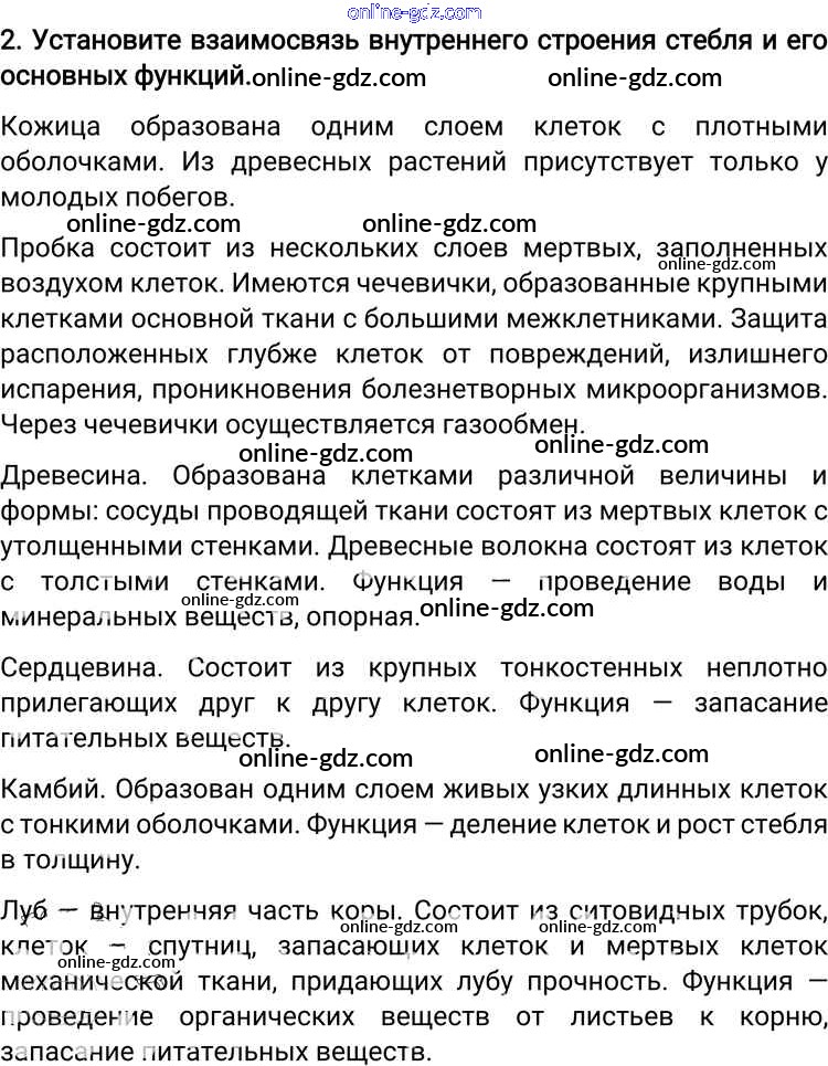 Готовые домашние задания по Биологии за 6 класс Учебник Пономарева, Корнилова Алгоритм успеха 2018 - Вопросы §10. Стебель, его строение и значение 2
