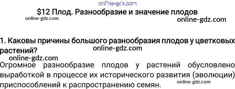 Готовые домашние задания по Биологии за 6 класс Учебник Пономарева, Корнилова Алгоритм успеха 2018 - Вопросы §12. Плод. Разнообразие и значение плодов 1