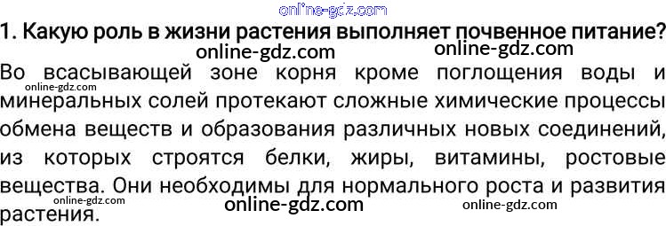 Готовые домашние задания по Биологии за 6 класс Учебник Пономарева, Корнилова Алгоритм успеха 2018 - Вопросы §13. Минеральное питание растений и значение воды 1