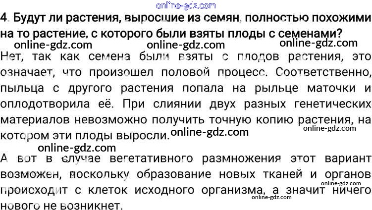 Готовые домашние задания по Биологии за 6 класс Учебник Пономарева, Корнилова Алгоритм успеха 2018 - Вопросы §16. Размножение и оплодотворение у растений 4