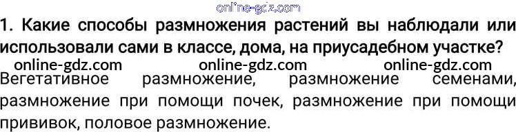 Готовые домашние задания по Биологии за 6 класс Учебник Пономарева, Корнилова Алгоритм успеха 2018 - Вопросы §17. Вегетативное размножение растений и его использование человеком 1