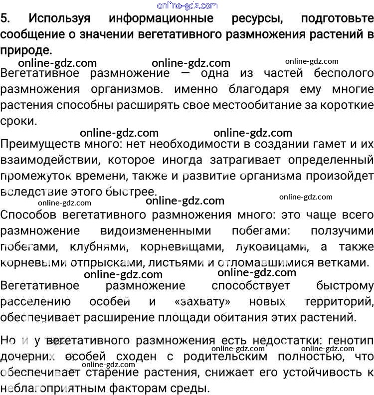 Готовые домашние задания по Биологии за 6 класс Учебник Пономарева, Корнилова Алгоритм успеха 2018 - Вопросы §17. Вегетативное размножение растений и его использование человеком 5
