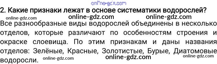 Готовые домашние задания по Биологии за 6 класс Учебник Пономарева, Корнилова Алгоритм успеха 2018 - Вопросы §20. Водоросли, их разнообразие и значение в природе 2