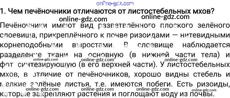 Готовые домашние задания по Биологии за 6 класс Учебник Пономарева, Корнилова Алгоритм успеха 2018 - Вопросы §21. Отдел Моховидные. Общая характеристика и значение 1