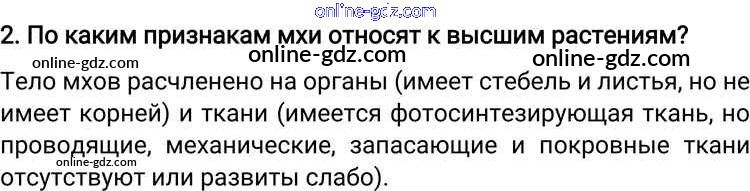 Готовые домашние задания по Биологии за 6 класс Учебник Пономарева, Корнилова Алгоритм успеха 2018 - Вопросы §21. Отдел Моховидные. Общая характеристика и значение 2