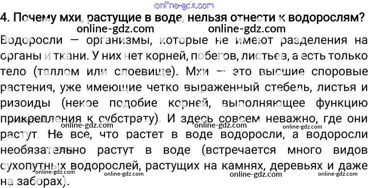 Готовые домашние задания по Биологии за 6 класс Учебник Пономарева, Корнилова Алгоритм успеха 2018 - Вопросы §21. Отдел Моховидные. Общая характеристика и значение 4