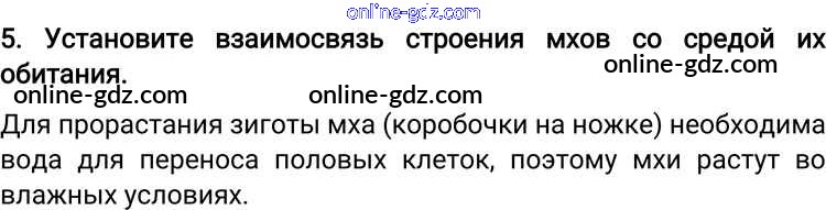 Готовые домашние задания по Биологии за 6 класс Учебник Пономарева, Корнилова Алгоритм успеха 2018 - Вопросы §21. Отдел Моховидные. Общая характеристика и значение 5