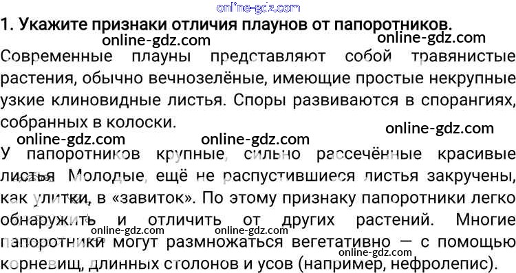 Готовые домашние задания по Биологии за 6 класс Учебник Пономарева, Корнилова Алгоритм успеха 2018 - Вопросы §22. Плауны. Хвощи. Папоротники 1